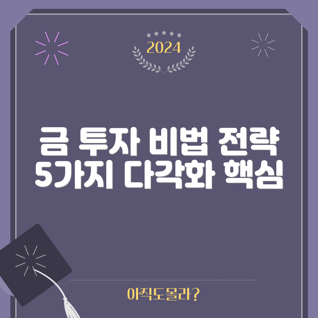 위의 5가지 전략을 통해 금으로 투자 다각화를 꾀하고, 불확실한 경제 환경에서도 리스크를 관리할 수 있습니다. 각 전략을 잘 이해하고 자신의 투자 성향에 맞춰 적용해 보세요.