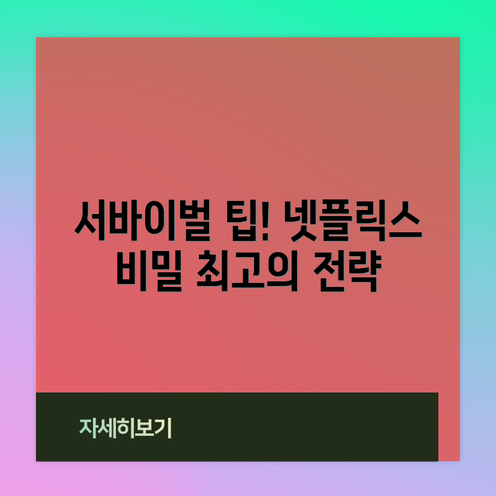 넷플릭스의 해외 서바이벌 프로그램을 통해 마스터가 되는 방법을 알려드릴게요. 이 글에서는 단계별로 실행 가능한 꿀팁을 소개합니다.