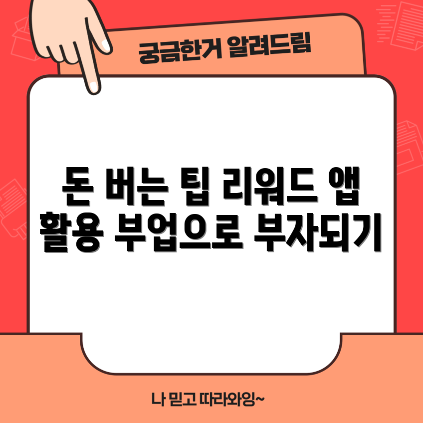 부업 리워드 앱으로 돈 버는 길잡이를 통해 성공적인 수익을 올릴 수 있는 전략을 알아보세요. 구체적인 방법과 사례를 통해 실천할 수 있습니다.