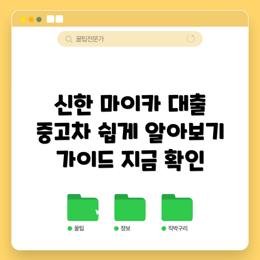 - 금리 비교하기: 신한 마이카 중고차 대출의 경우, 금리는 보통 2.5%에서 시작하는데, 다른 은행의 금리와 비교해보세요.