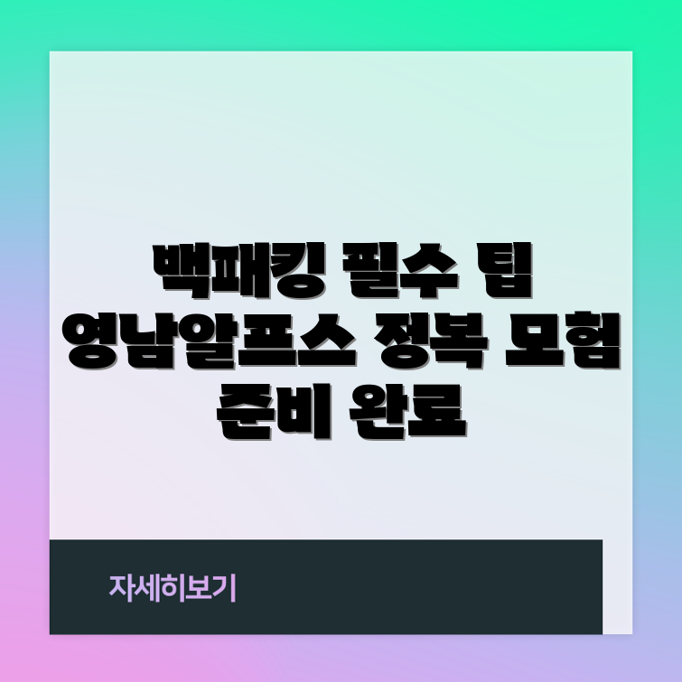 안전한 영남알프스 백패킹을 위해 반드시 준수해야 할 5가지 필수 수칙을 소개합니다. 이 팁들은 당신의 모험을 더욱 안전하게 만들어 줄 것입니다.