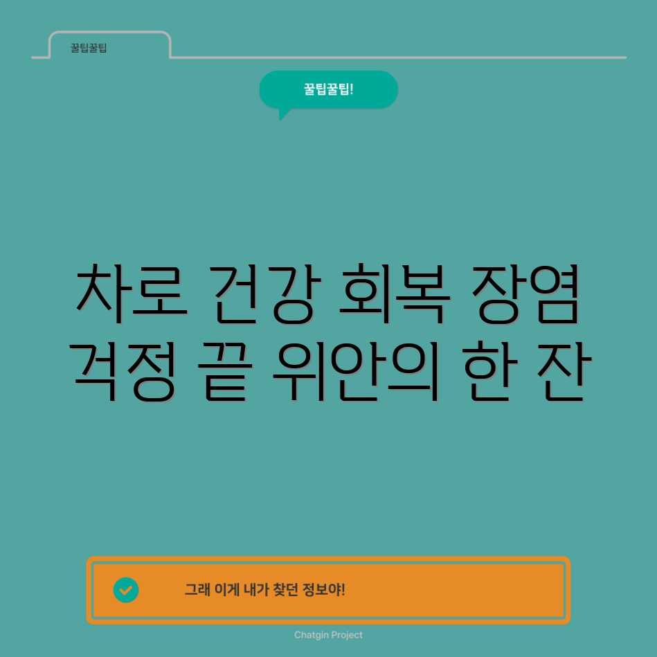 이 차들은 장 건강을 회복하는 데 도움을 주며, 일상의 스트레스를 줄이고 면역력을 높이는 데 기여할 수 있습니다. 차를 활용하여 장염 극복의 첫 걸음을 내딛어 보세요!