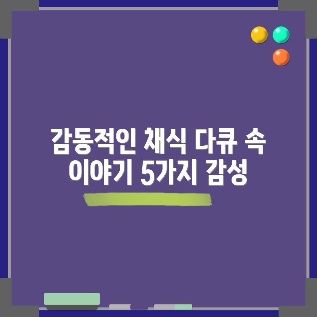 A: 각 다큐멘터리가 전달하는 메시지가 다를 수 있으므로, 자신이 원하는 주제(환경, 건강, 윤리 등)에 맞는 다큐멘터리를 선택하는 것이 중요합니다. 또한, 감동적인 이야기를 듣는 것은 개인의 가치관을 돌아보는 기회가 될 수 있습니다.