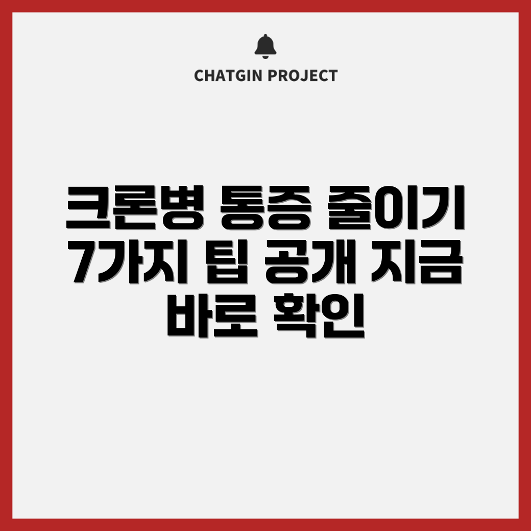 크론병 통증 완화 방법에는 여러 가지가 있으며, 이 중 5가지 효과적인 통증 관리 전략을 소개합니다. 각 전략은 소화관 고통 완화하기에 도움이 되는 방법들로 구성되어 있습니다.