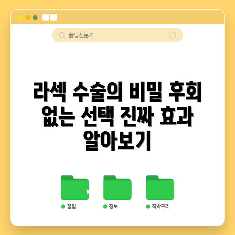 라섹 수술을 고려하고 있다면, 후회 없는 결정을 위해 충분한 정보를 얻는 것이 중요합니다. 실제 후기를 통해 효과와 부작용을 비교하고, 비용을 미리 알아보는 것이 좋습니다. 올바른 정보를 통해 여러분의 선택이 더욱 확고해질 것입니다.